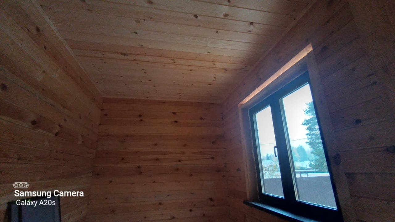 5.Настил потолка первого и второго этажа имитацией бруса толщиной 20 мм.